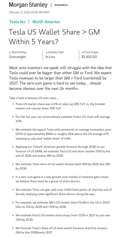 Morgan Stanley S Jonas Tesla To Surpass Gm Ford Us Market Share
